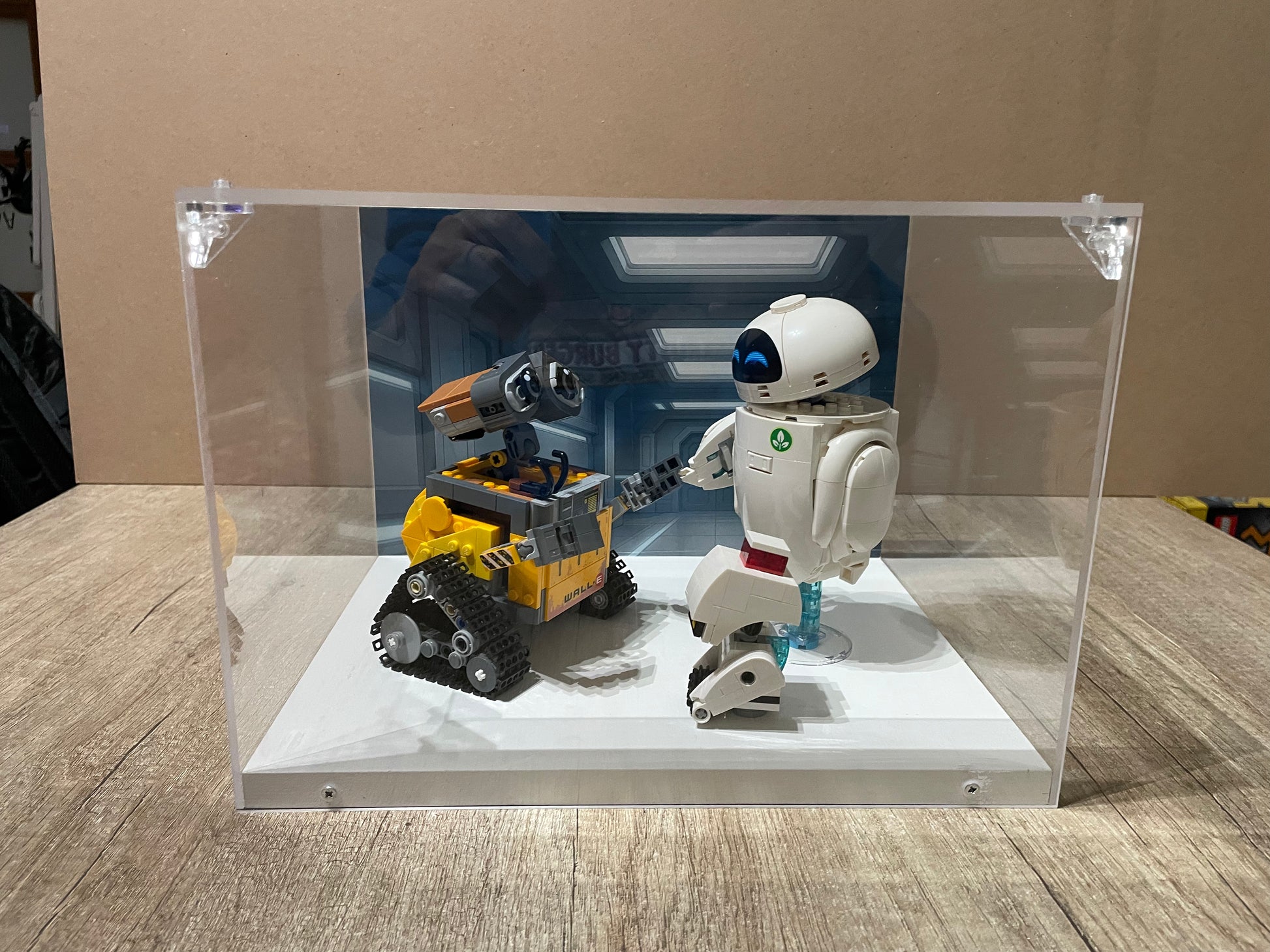 Le teche da mensola appendibili Bricklean con fondo stampato offrono una doppia soluzione espositiva: possono essere appoggiate su una mensola oppure appese a parete grazie ai supporti posteriori integrati. Realizzate artigianalmente in Italia, combinano una base in legno con una struttura in plexiglass ultra-trasparente, garantendo una protezione totale dalla polvere.